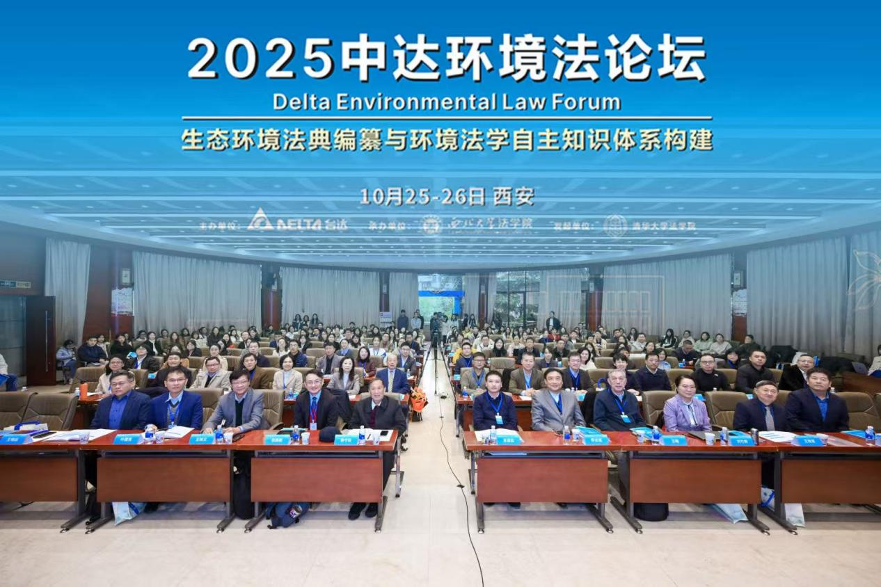 10月25日至26日,由台达集团主办、德赢官网法学院承办的“2025中达环境法论坛”在太白校区召开。来自北京大学、清华大学、中国人民大学、中国政法大学、武汉大学、中南财经政法大学、上海交通大学、郑州大学等高校的专家学者和青年师生代表围绕“生态环境法典编纂与环境法学自主知识体系构建”主题展开深入研讨。