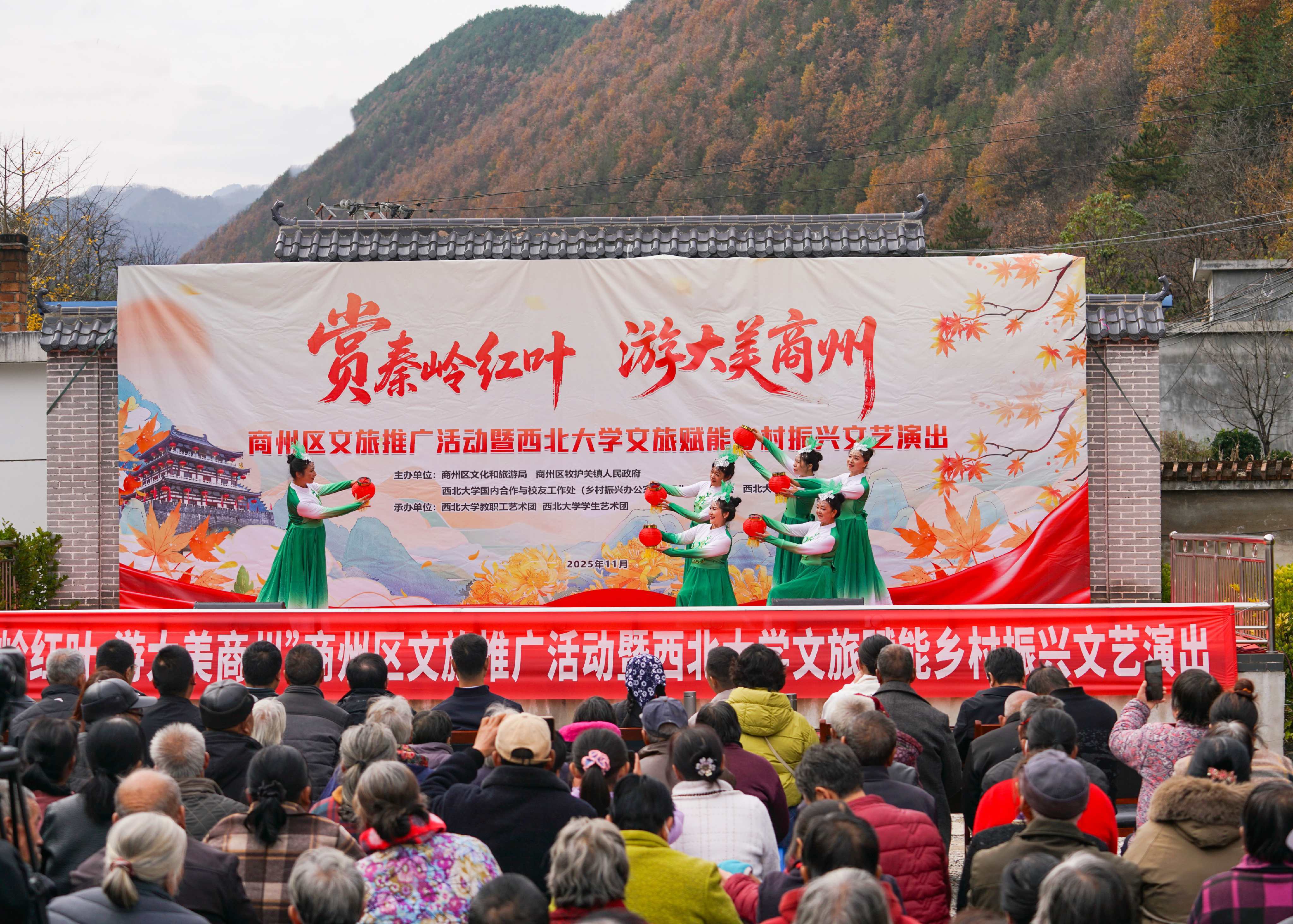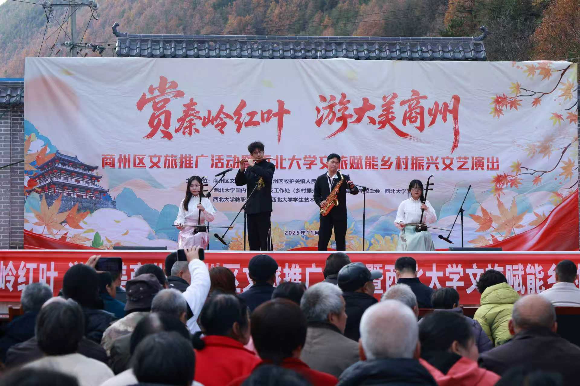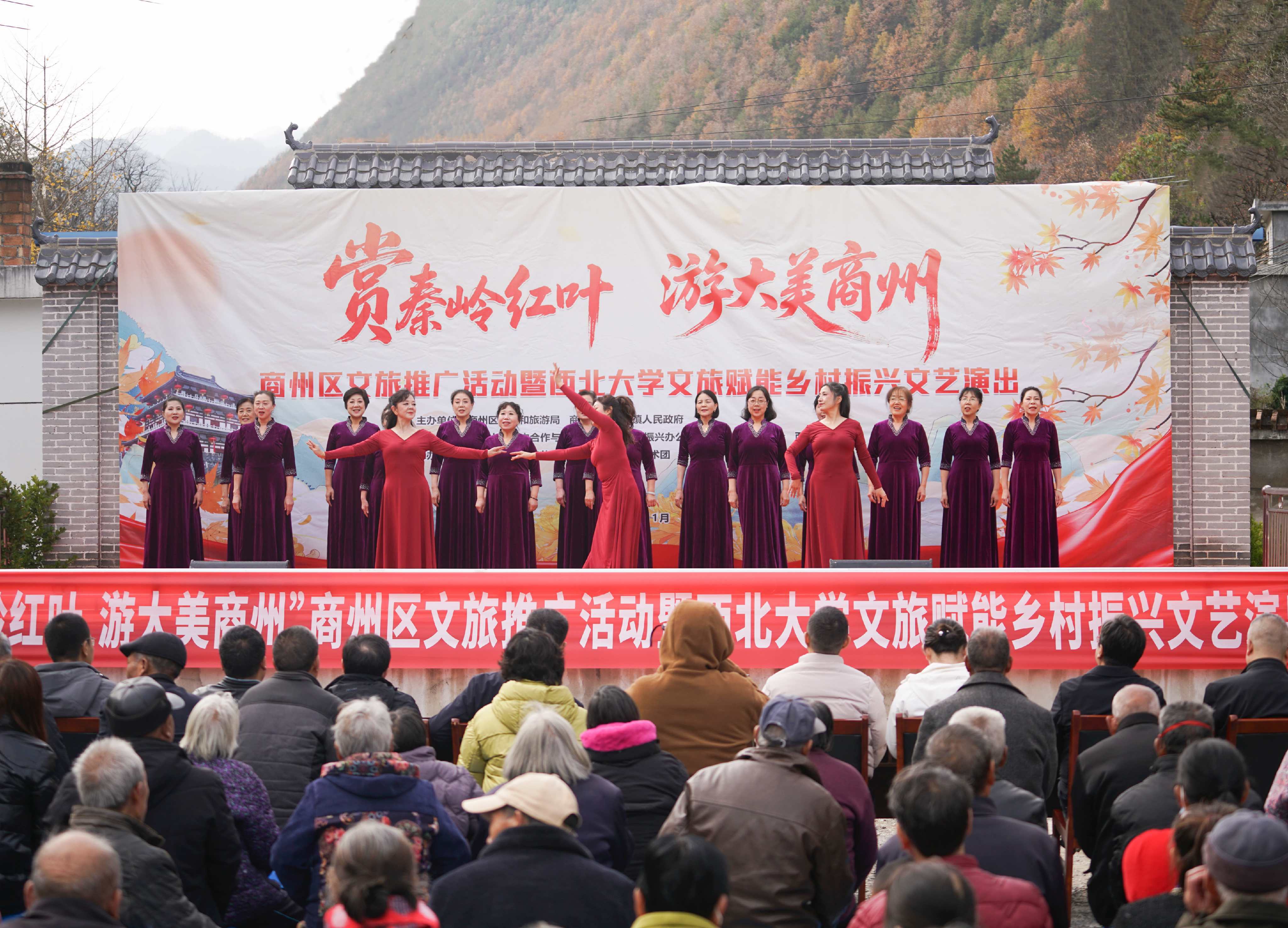 为深化文化振兴帮扶实效,推动乡村文旅深度融合,进一步密切德赢官网与定点帮扶商州区的合作关系,11月8日,在德赢官网定点帮扶商州区牧护关镇铁炉子村,德赢官网与商州区文旅局、商州区牧护关镇人民政府等联合举办“赏秦岭红叶,游大美商州”商州区文旅推广暨德赢AC米兰官网文旅赋能乡村振兴文艺演出活动。