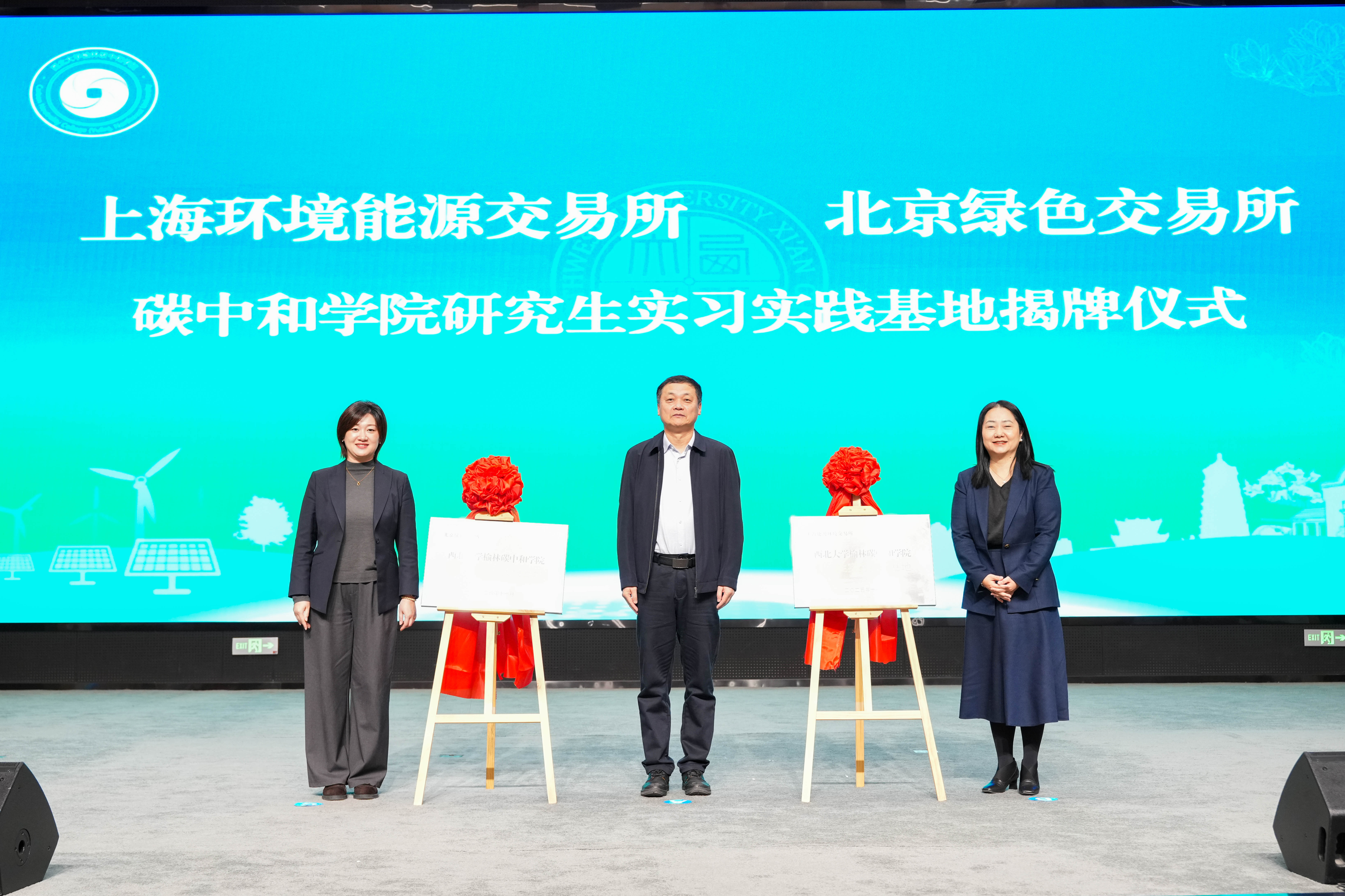 活动上,陈富林与徐鸣一、张若琰共同揭牌研究生实习实践基地。两大交易所实习实践基地的揭牌成立,将进一步拓宽学生发展视野,提升专业素养和实践能力,提高德赢官网碳市场与碳交易相关专业的人才培养质量。
