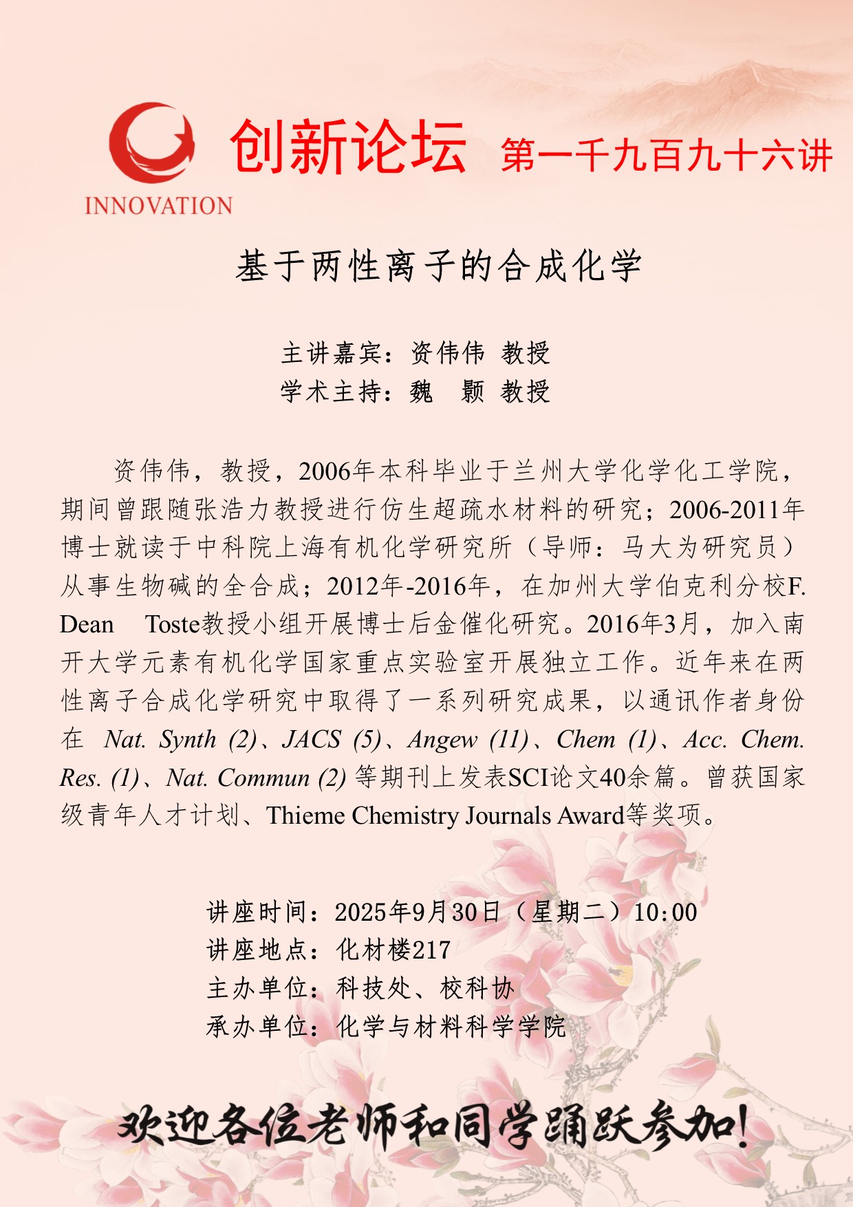 德赢AC米兰官网创新论坛第一千九百九十六讲: 基于两性离子的合成化学