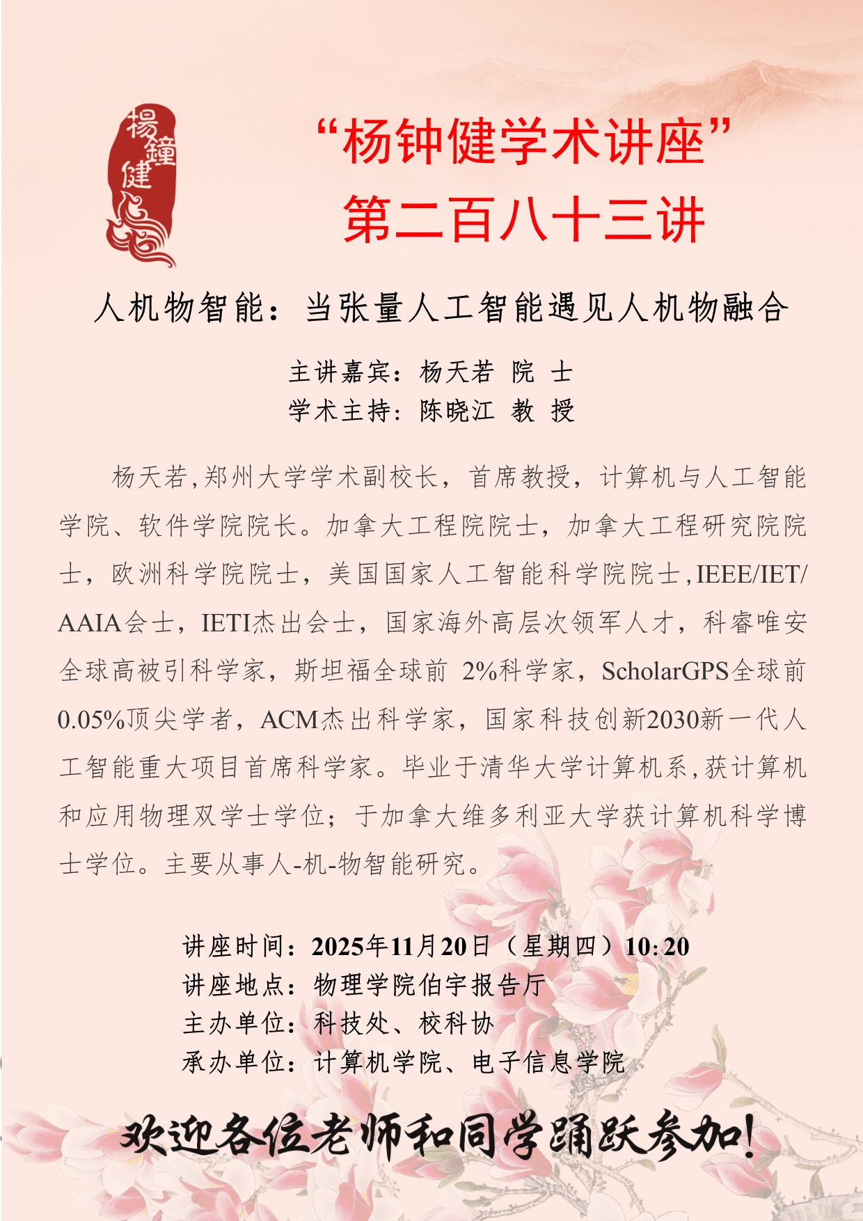 “杨钟健学术讲座”第二百八十三讲:人机物智能:当张量人工智能遇见人机物融合