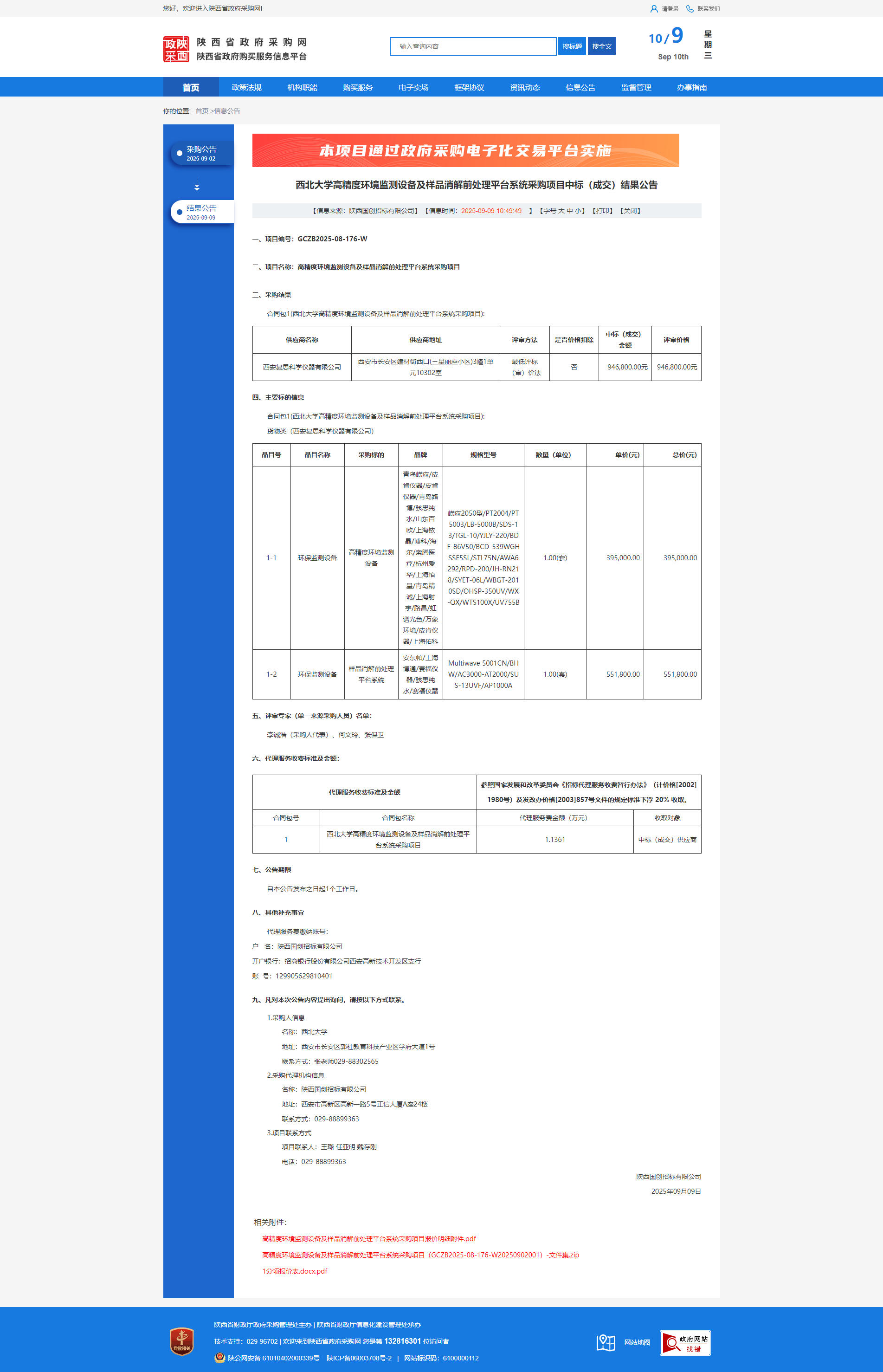 德赢AC米兰官网高精度环境监测设备及样品消解前处理平台系统采购项目中标(成交)结果公告