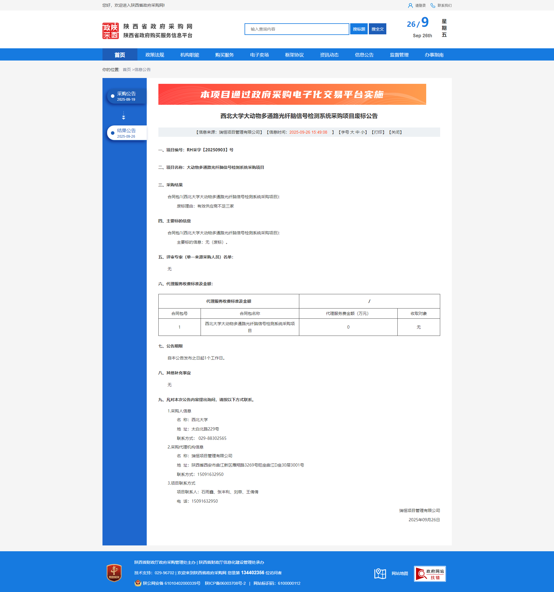 德赢AC米兰官网大动物多通路光纤脑信号检测系统采购项目废标公告