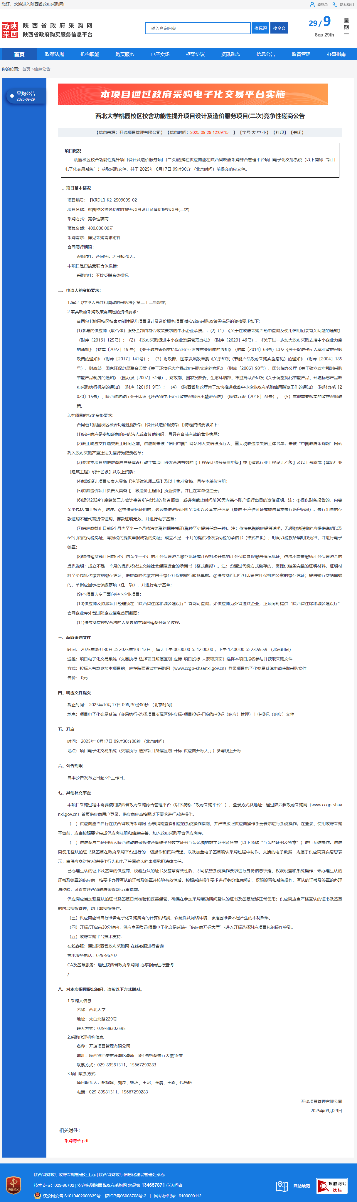 德赢AC米兰官网桃园校区校舍功能性提升项目设计及造价服务项目(二次)竞争性磋商公告