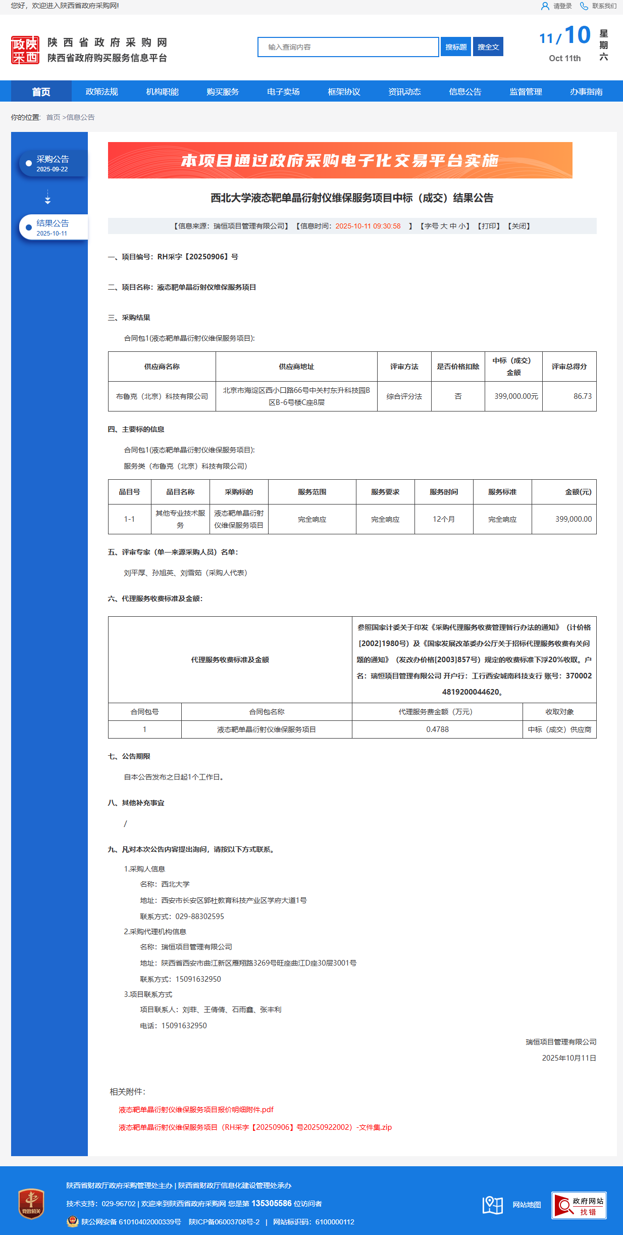 德赢AC米兰官网液态靶单晶衍射仪维保服务项目中标(成交)结果公告