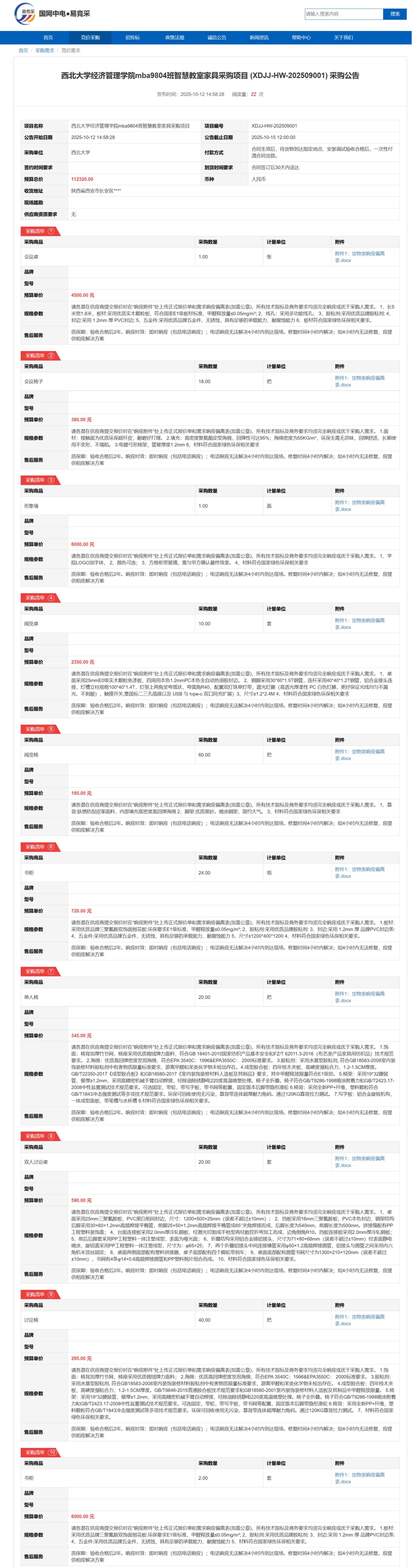 德赢AC米兰官网经济管理学院mba9804班智慧教室家具采购项目(XDJJ-HW-202509001)竞价采购公告