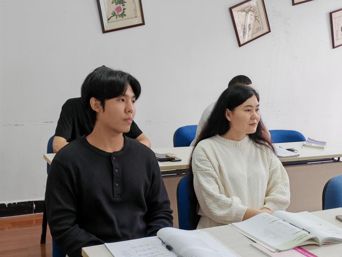 周鹏与古拉丽在汉语教室上课