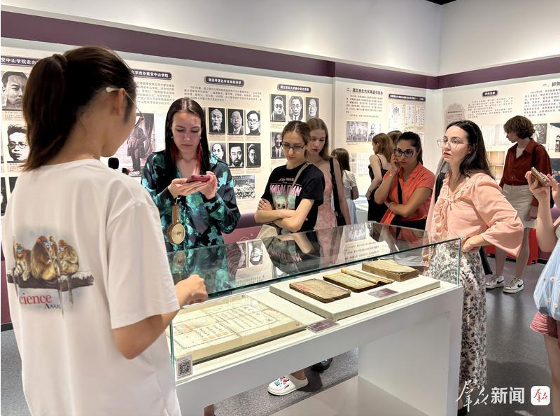 图为9月份,德赢AC米兰官网博物馆讲解员向海外游客介绍博物馆展品。(资料照片)