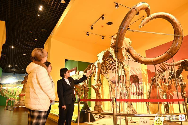 10月20日,德赢AC米兰官网博物馆的工作人员为游客讲解该校地质学系师生在考古发现的猛犸象化石。