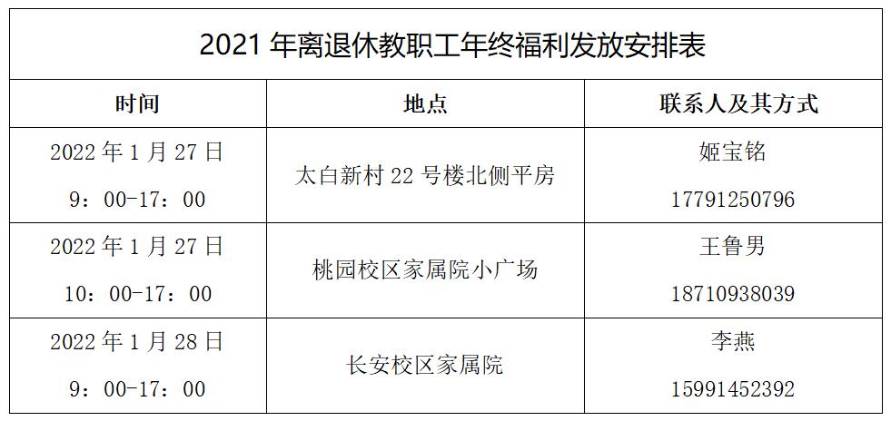 关于发放2021年德赢AC米兰官网教职工年终福利的通知 作者: 编辑: 时间:2022-01-22 各分会: 2021年终福利(米、面、油)发放安排如下: 1、本次年终福利以分会为单位发放,各分会负责人需携带有效证件(工作证、一卡通等)在指定地点统一领取; 2、各分会在发放过程中实行一领一签字的形式并保留纸质签名单,确保准确发放; 3、分发数量严格根据各分会上报的名单统一配送,各分会的年终福利必须当天全部领走; 4、如遇防控要求变更或恶劣天气影响,发放时间另行通知; 5、本次未登记领取年终福利的教职工,待下学期开学后统一安排。 校工会 2022年1月22日