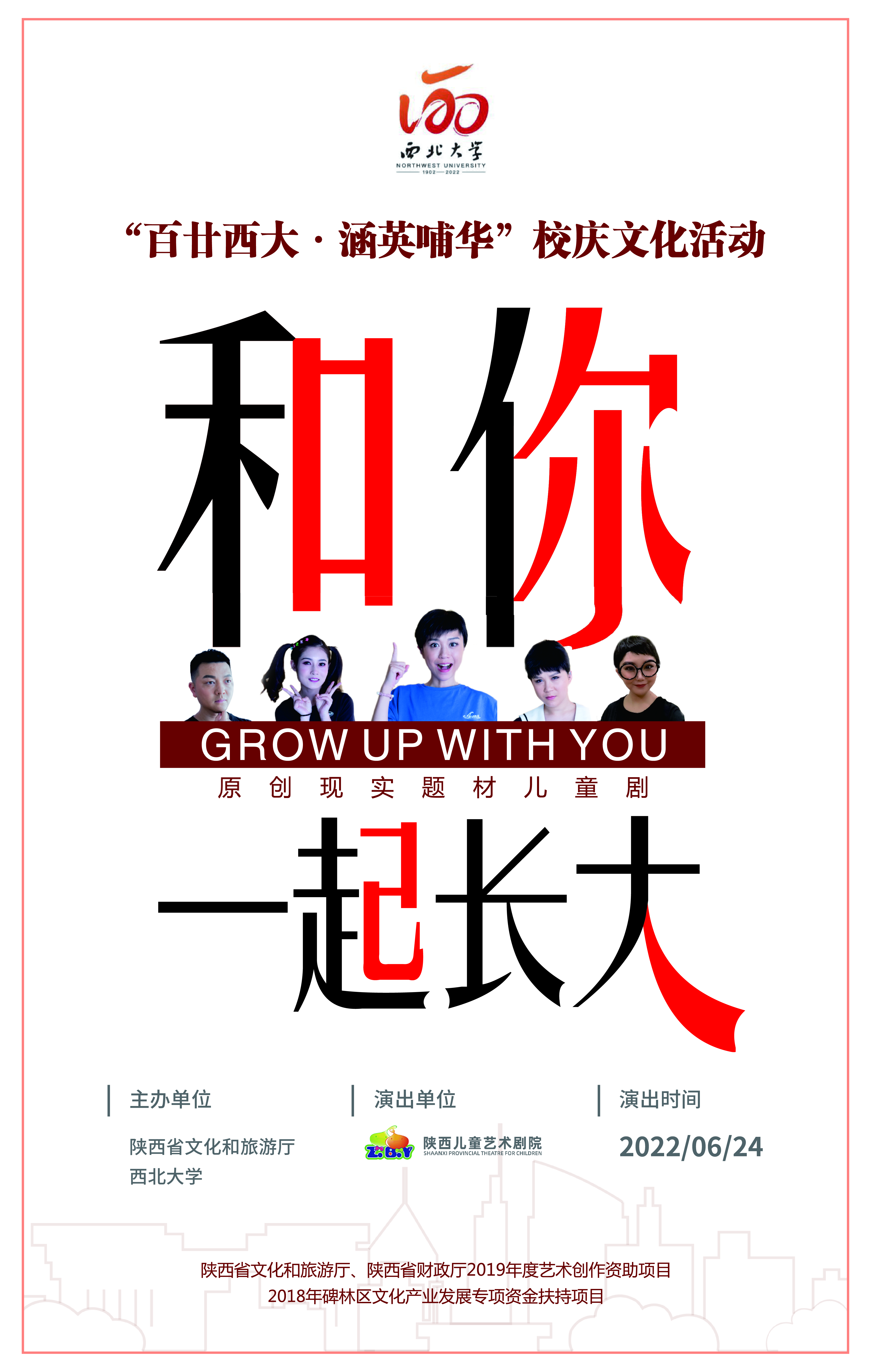 为庆祝德赢AC米兰官网建校120周年,丰富校园文化生活,关爱教职工子女身心健康发展,平衡教职工校园工作与家庭生活的关系,校工会联合陕西省文化和旅游厅邀请陕西儿童艺术剧院演出原创现实题材儿童剧《和你一起长大》,现将有关事项通知如下。