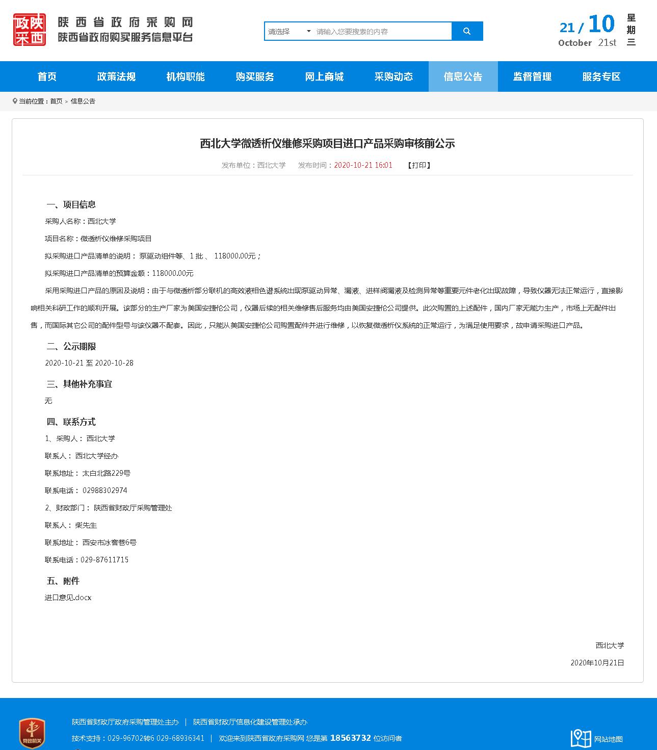 德赢AC米兰官网微透析仪维修采购项目进口产品采购审核前公示