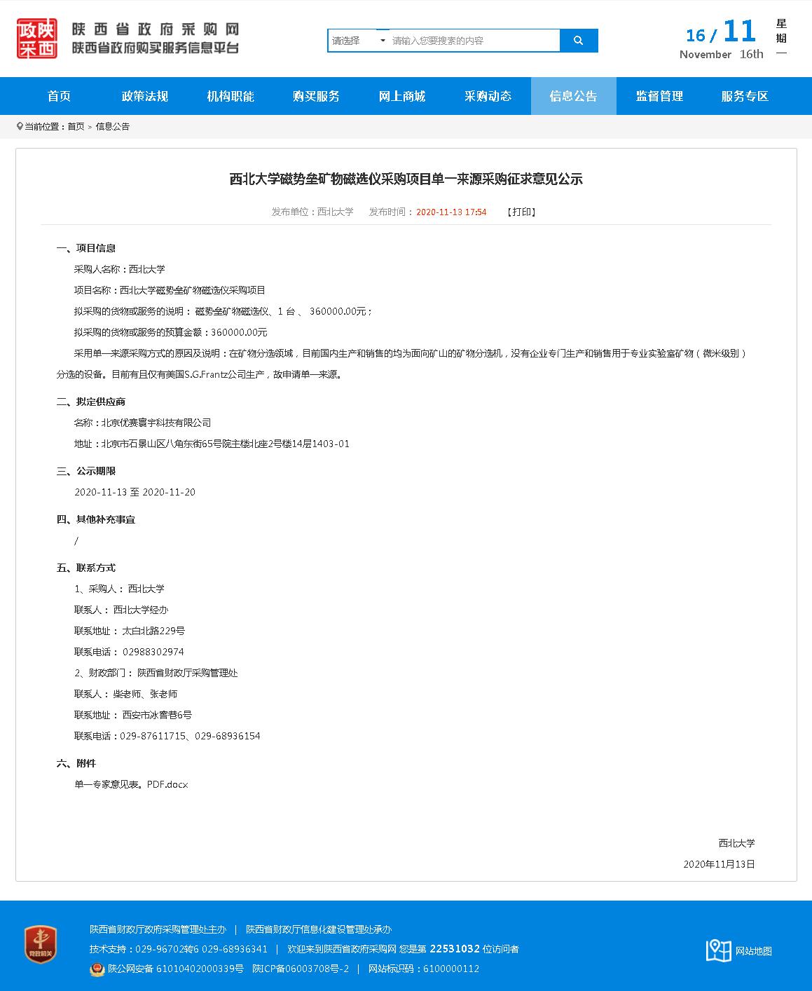 德赢AC米兰官网磁势垒矿物磁选仪采购项目单一来源采购征求意见公示