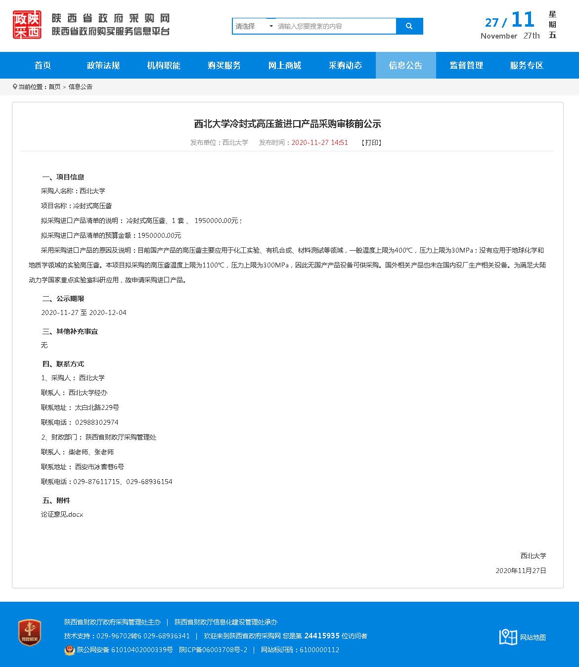 德赢AC米兰官网冷封式高压釜进口产品采购审核前公示