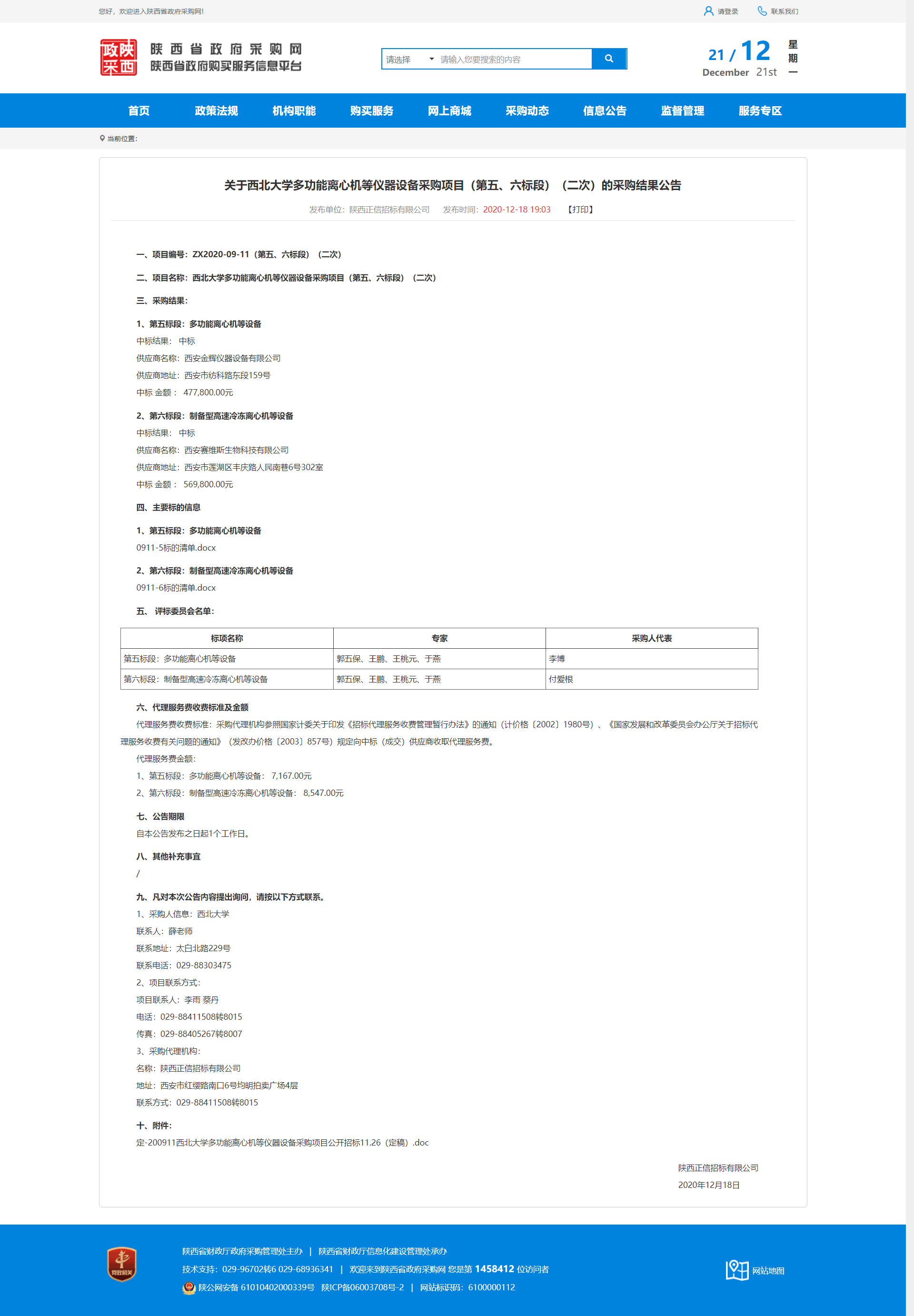 关于德赢AC米兰官网多功能离心机等仪器设备采购项目(第五、六标段)(二次)的采购结果公告 作者: 编辑:薛利娟 时间:2020-12-21 原 原公告地址:http://www.ccgp-shaanxi.gov.cn/notice/noticeDetail.do?noticeguid=8a85be34765f9eac01767583a6a72bec