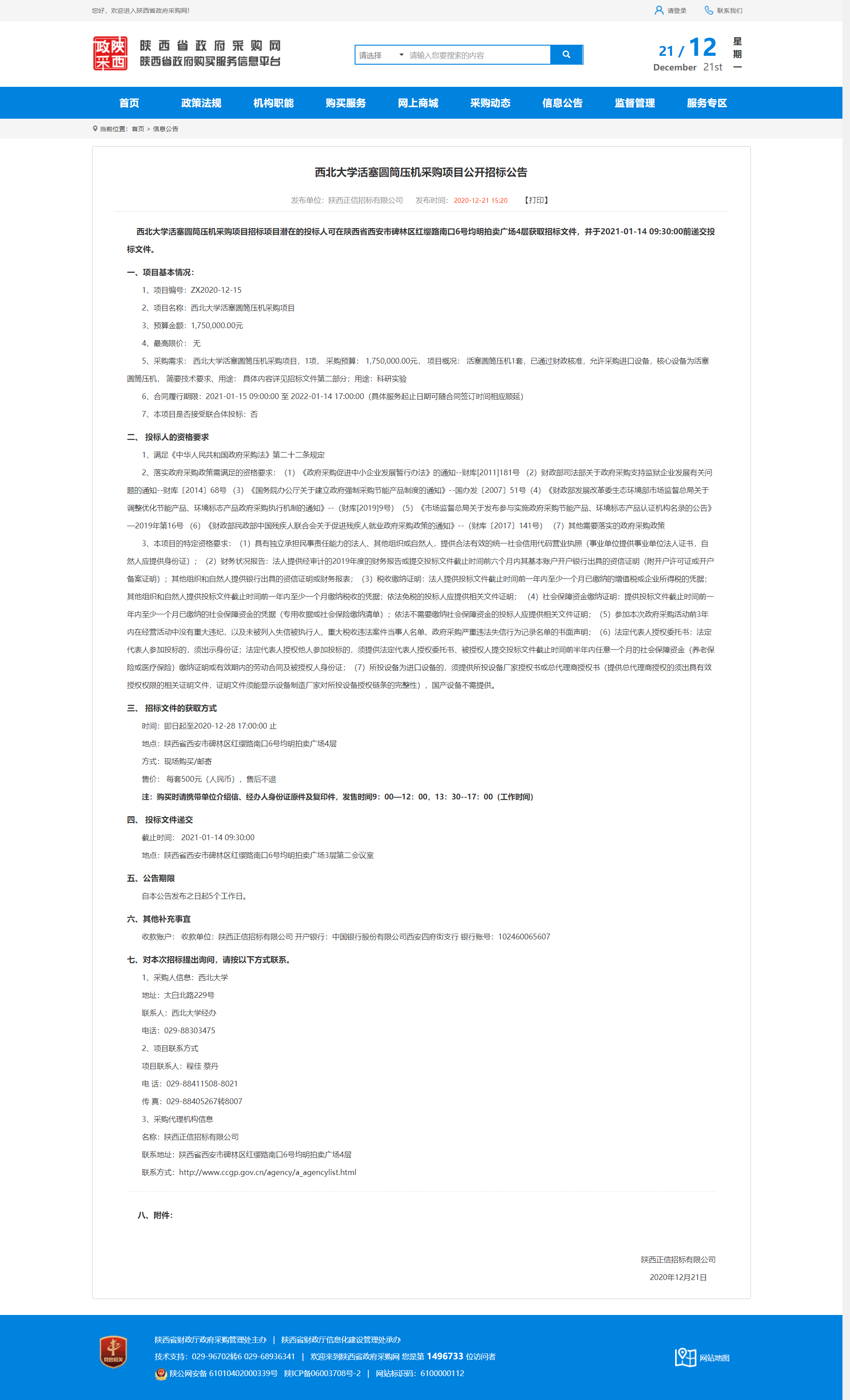 德赢AC米兰官网活塞圆筒压机采购项目公开招标公告 作者: 编辑:薛利娟 时间:2020-12-21 原公告地址:http://www.ccgp-shaanxi.gov.cn/notice/noticeDetail.do?noticeguid=8a85be33765f9dd0017683bb212e48f1