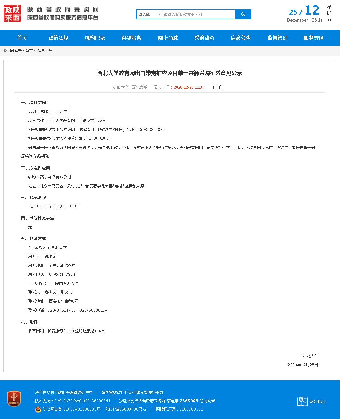 德赢AC米兰官网教育网出口带宽扩容项目单一来源采购征求意见公示