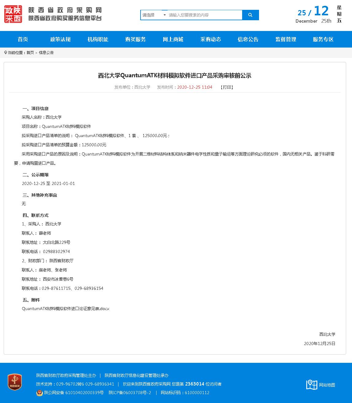 德赢AC米兰官网QuantumATK材料模拟软件进口产品采购审核前公示