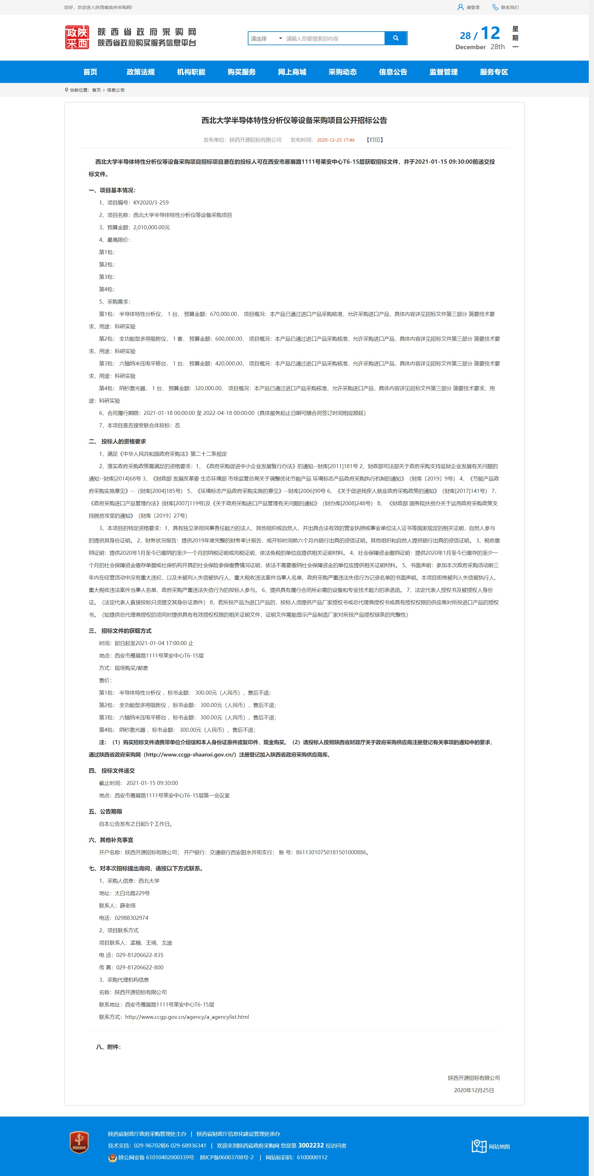 德赢AC米兰官网半导体特性分析仪等设备采购项目公开招标公告 作者: 编辑:薛利娟 时间:2020-12-28 原公告链接:http://www.ccgp-shaanxi.gov.cn/notice/noticeDetail.do?noticeguid=8a85be34769784fa0176994262042b99