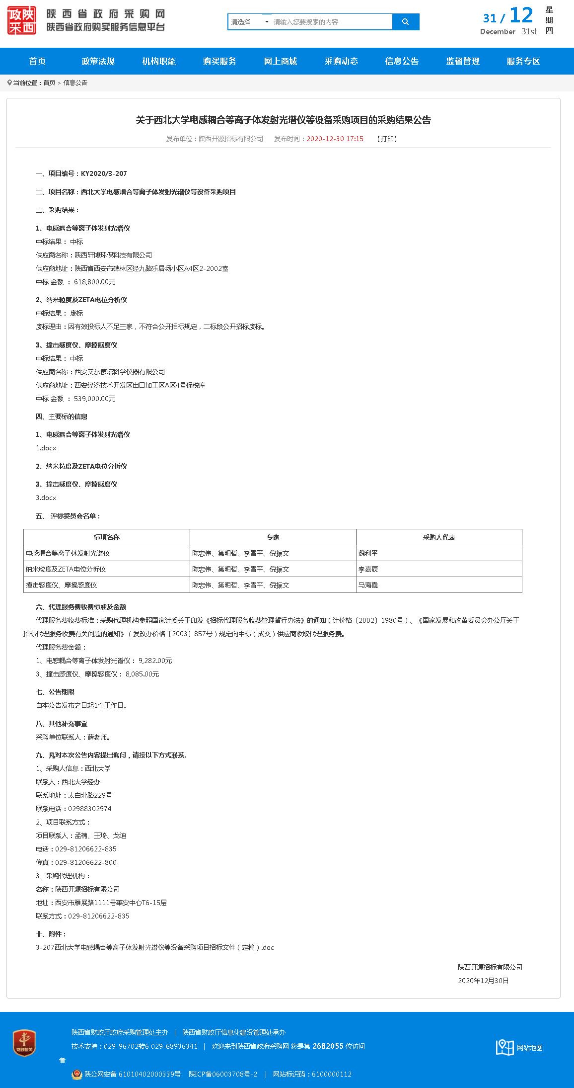 德赢AC米兰官网电感耦合等离子体发射光谱仪等设备采购项目的采购结果公告