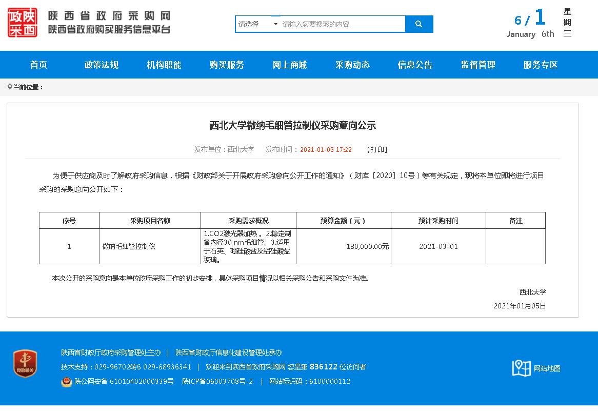 德赢AC米兰官网微纳毛细管拉制仪采购意向公示