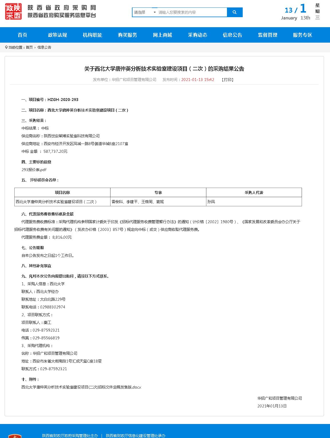 关于德赢AC米兰官网唐仲英分析技术实验室建设项目(二次)的采购结果公告