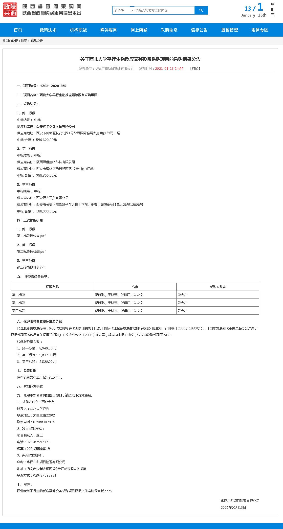 关于德赢AC米兰官网平行生物反应器等设备采购项目的采购结果公告