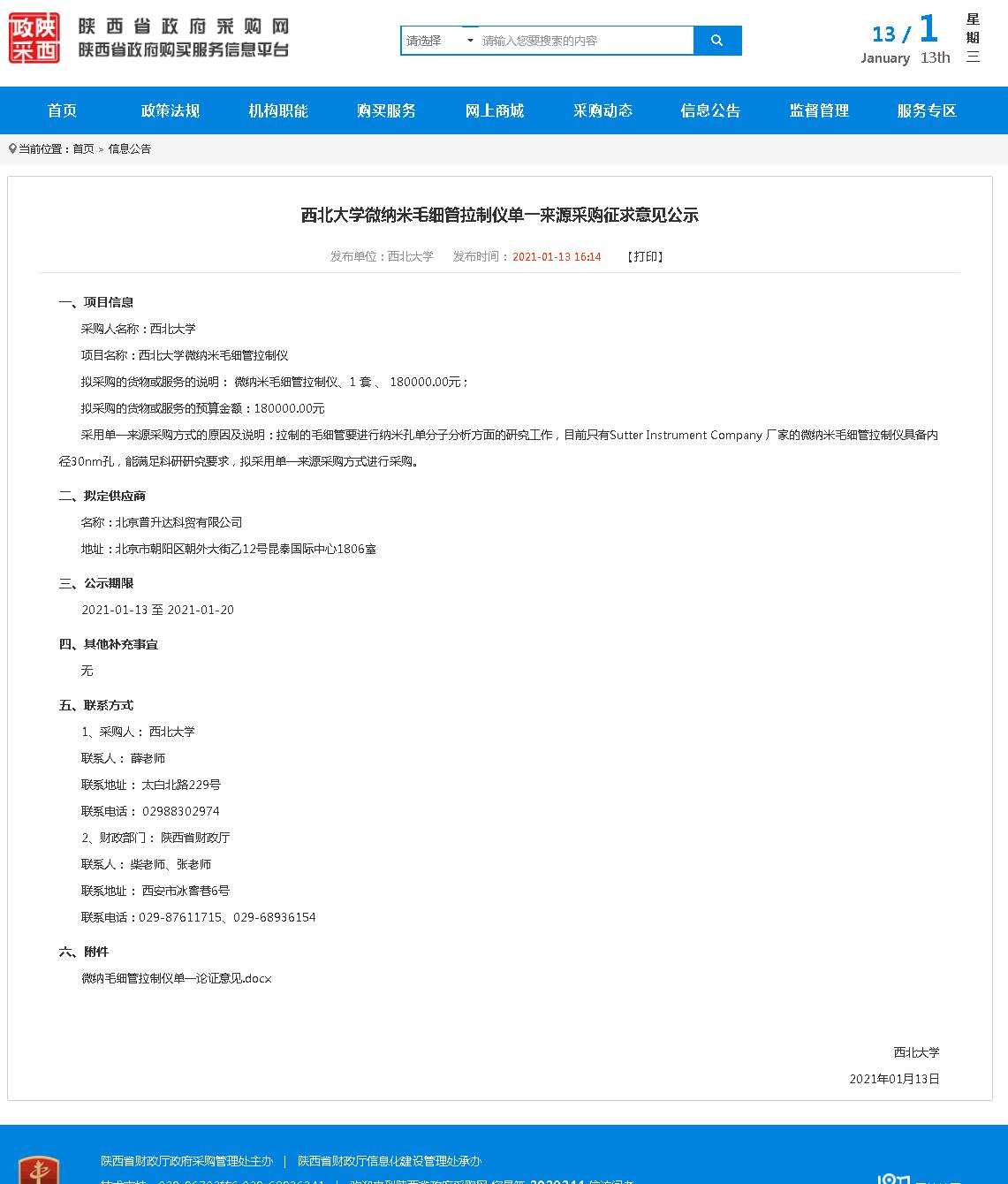 德赢AC米兰官网微纳米毛细管拉制仪单一来源采购征求意见公示