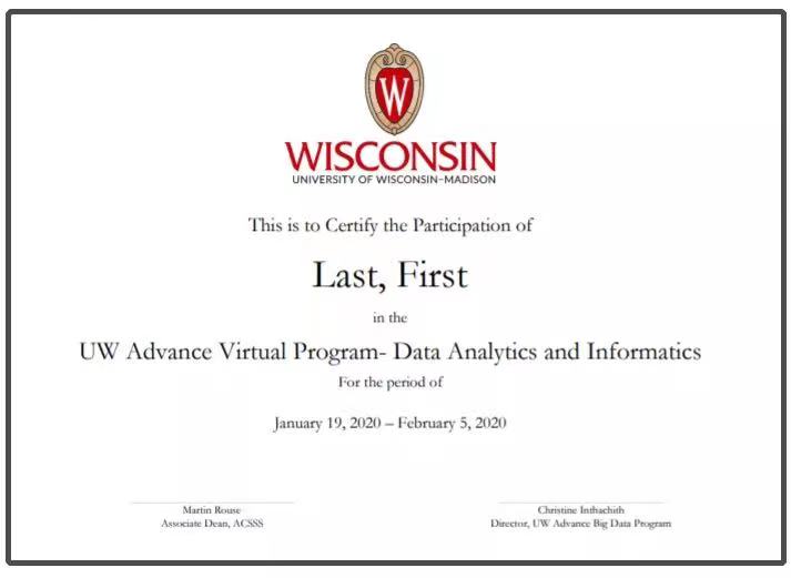 【威斯康星大学麦迪逊分校学习证明】获得威斯康星大学麦迪逊分校颁发的项目证书,为个人履历添砖加瓦;