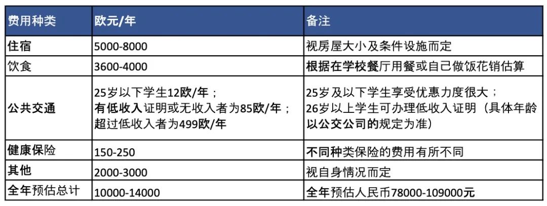 (1)学费:硕士学位:一般为1092-4600 欧元/年