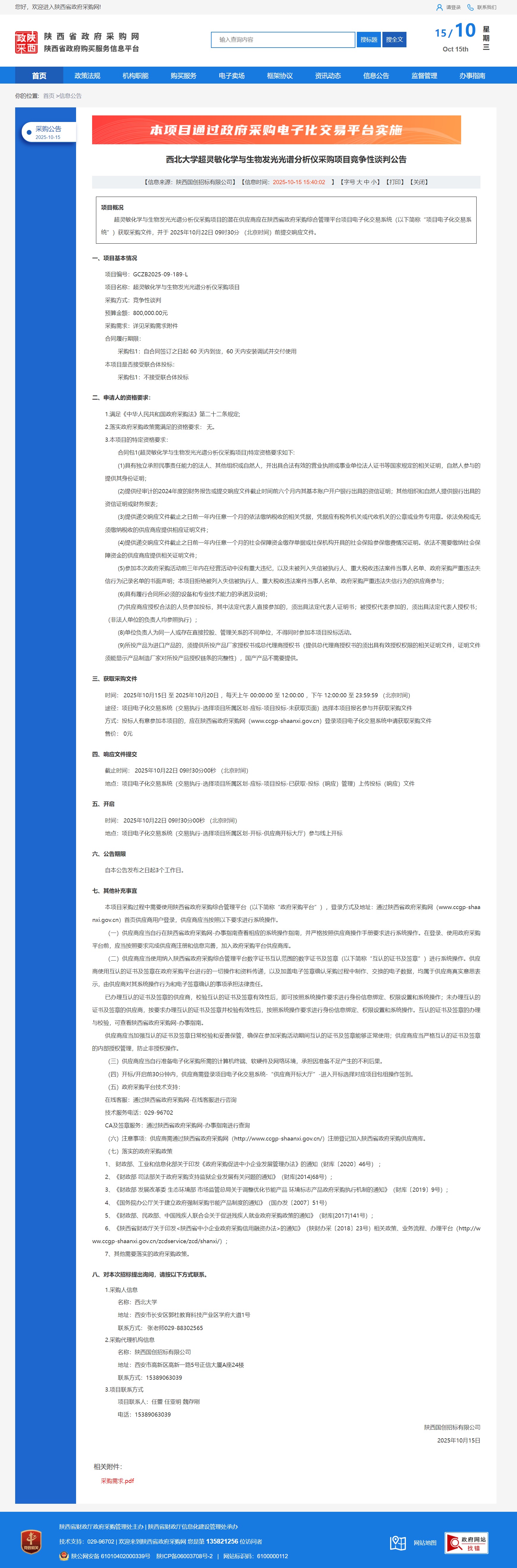 德赢AC米兰官网超灵敏化学与生物发光光谱分析仪采购项目竞争性谈判公告
