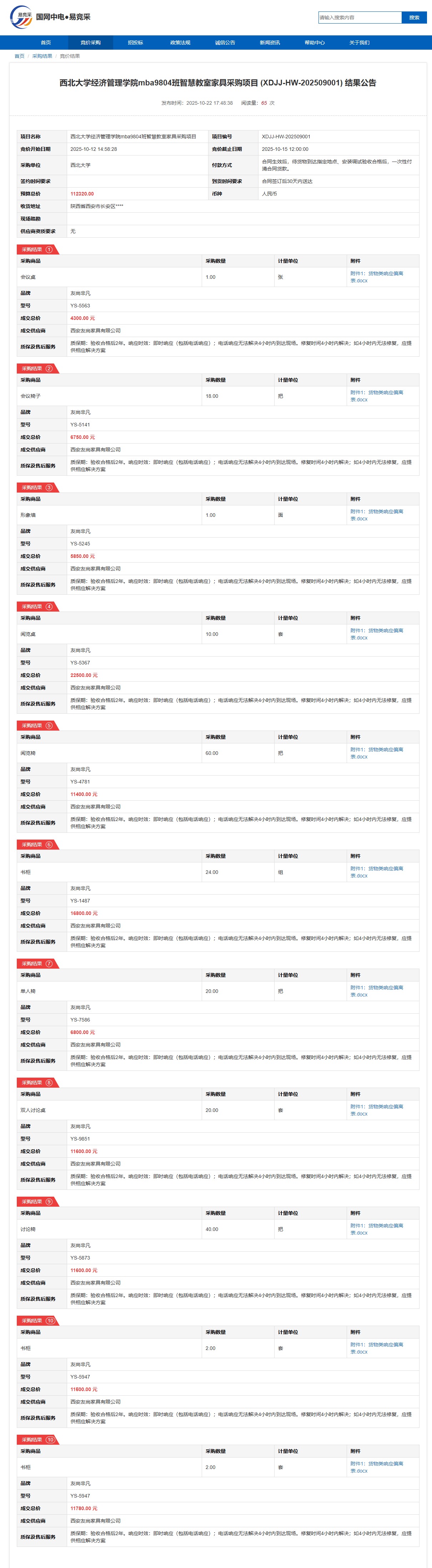 德赢AC米兰官网经济管理学院mba9804班智慧教室家具采购项目(XDJJ-HW-202509001)竞价结果公告