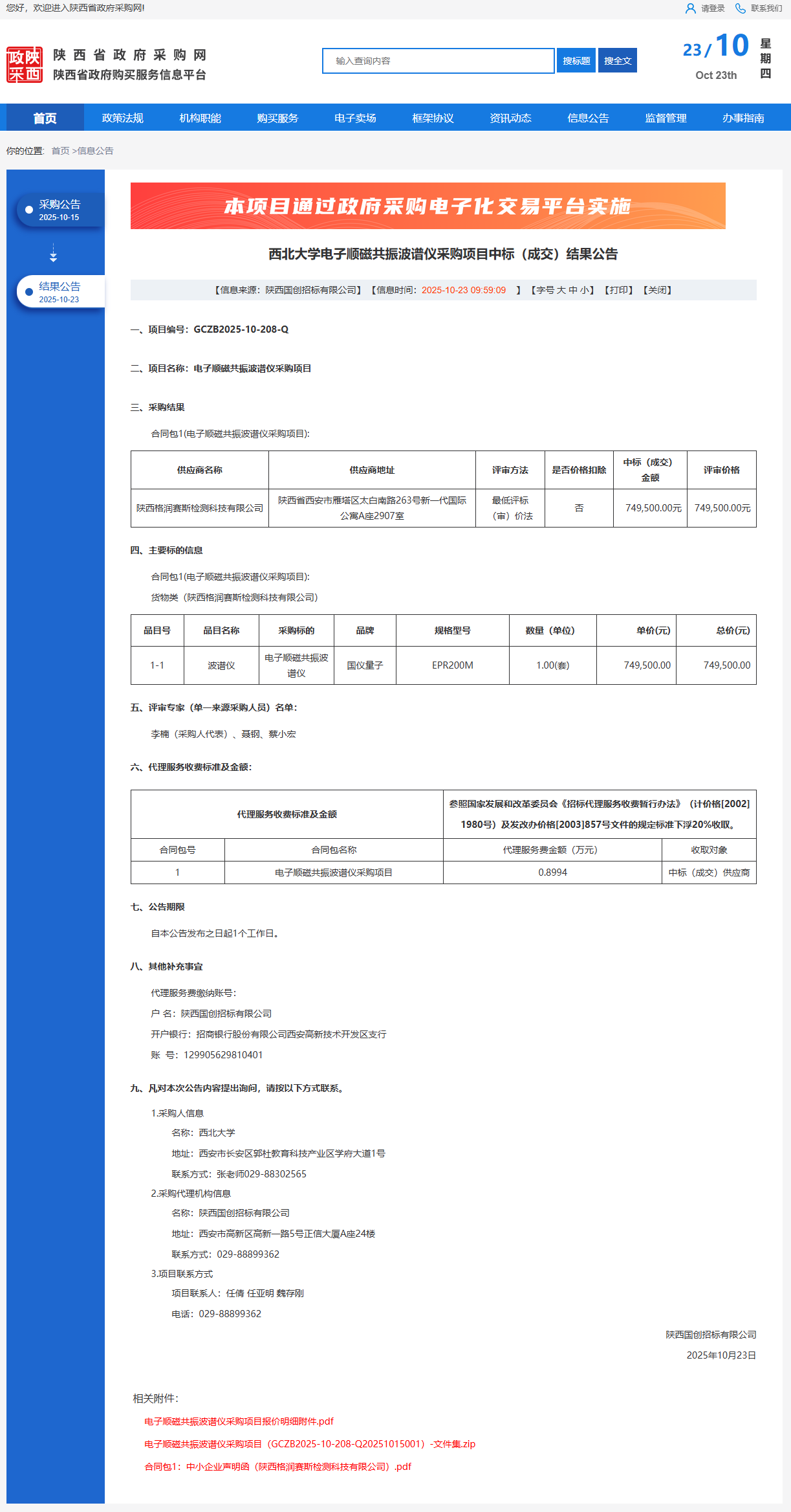 德赢AC米兰官网电子顺磁共振波谱仪采购项目中标(成交)结果公告