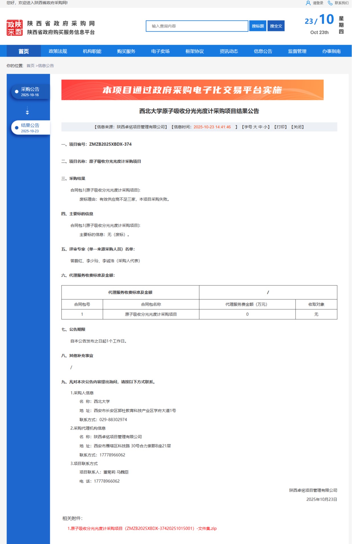 德赢AC米兰官网原子吸收分光光度计采购项目结果公告