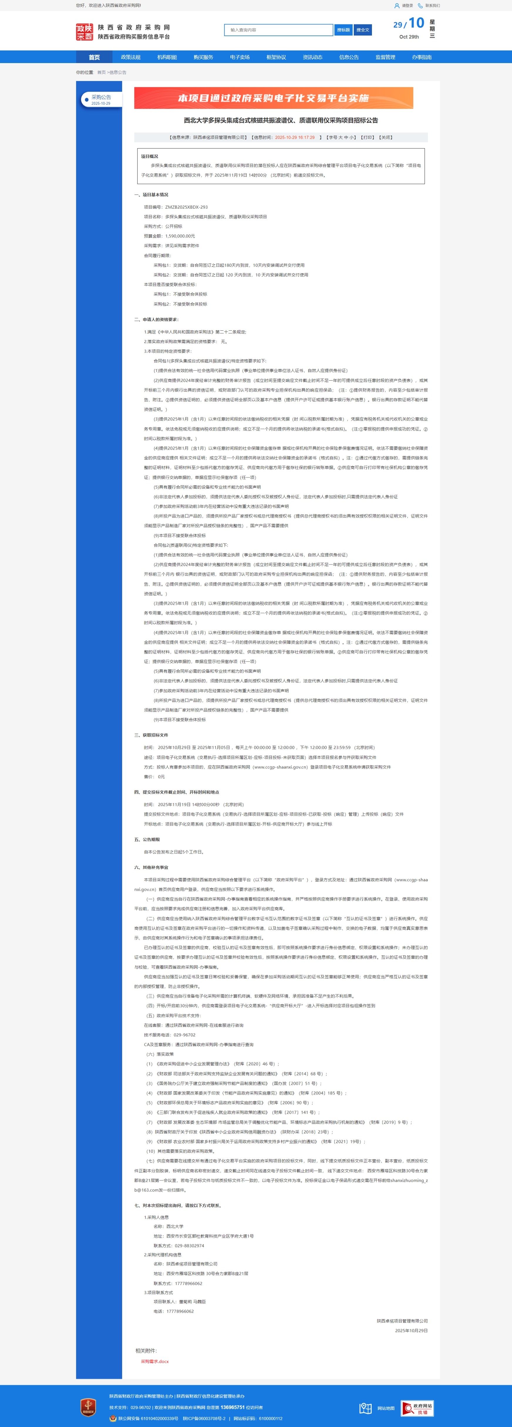 德赢AC米兰官网多探头集成台式核磁共振波谱仪、质谱联用仪采购项目招标公告 作者:国有资产管理处 编辑:国有资产管理处 时间:2025-10-29 原公告链接:https://www.ccgp-shaanxi.gov.cn/freecms/site/shaanxi/ggxx/info/2025/8a69c54f99f77a8f019a2efec46e4a64.html?noticeType=001011¬iceId=e7208489-b4a1-11f0-8063-08c0eb20c666
