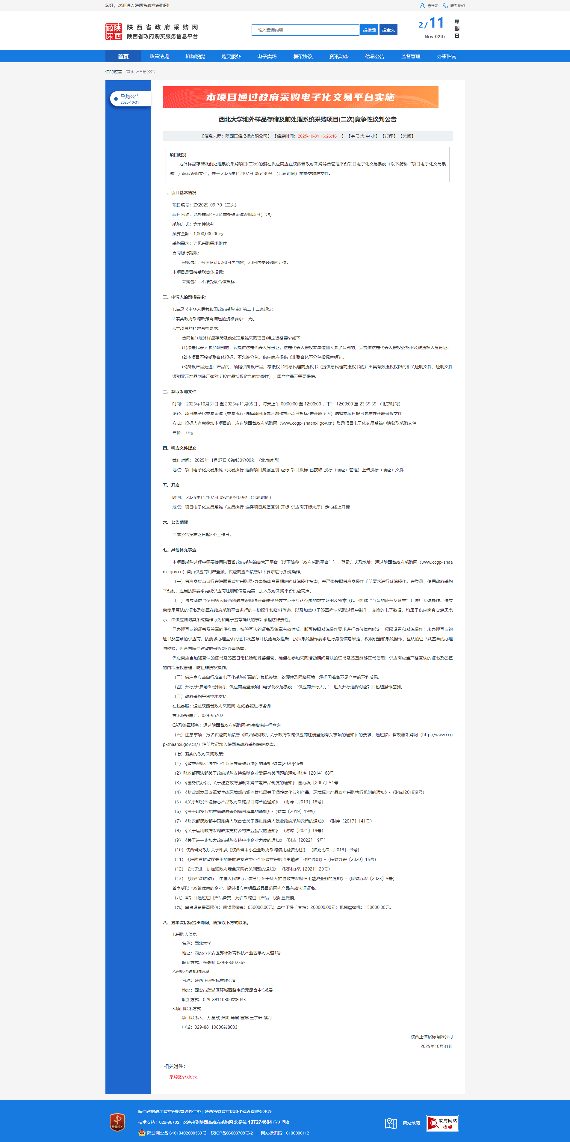 德赢AC米兰官网地外样品存储及前处理系统采购项目(二次)竞争性谈判公告