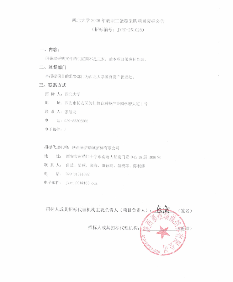 德赢AC米兰官网2026年教职工蛋糕采购项目废标公告