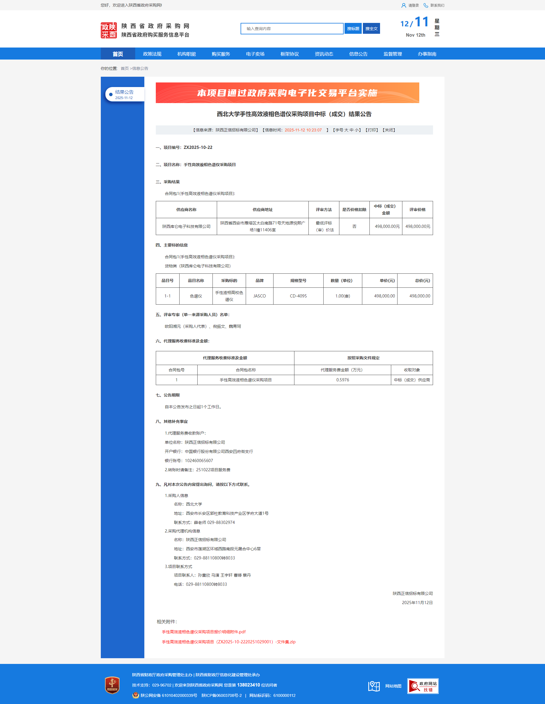 德赢AC米兰官网手性高效液相色谱仪采购项目中标(成交)结果公告