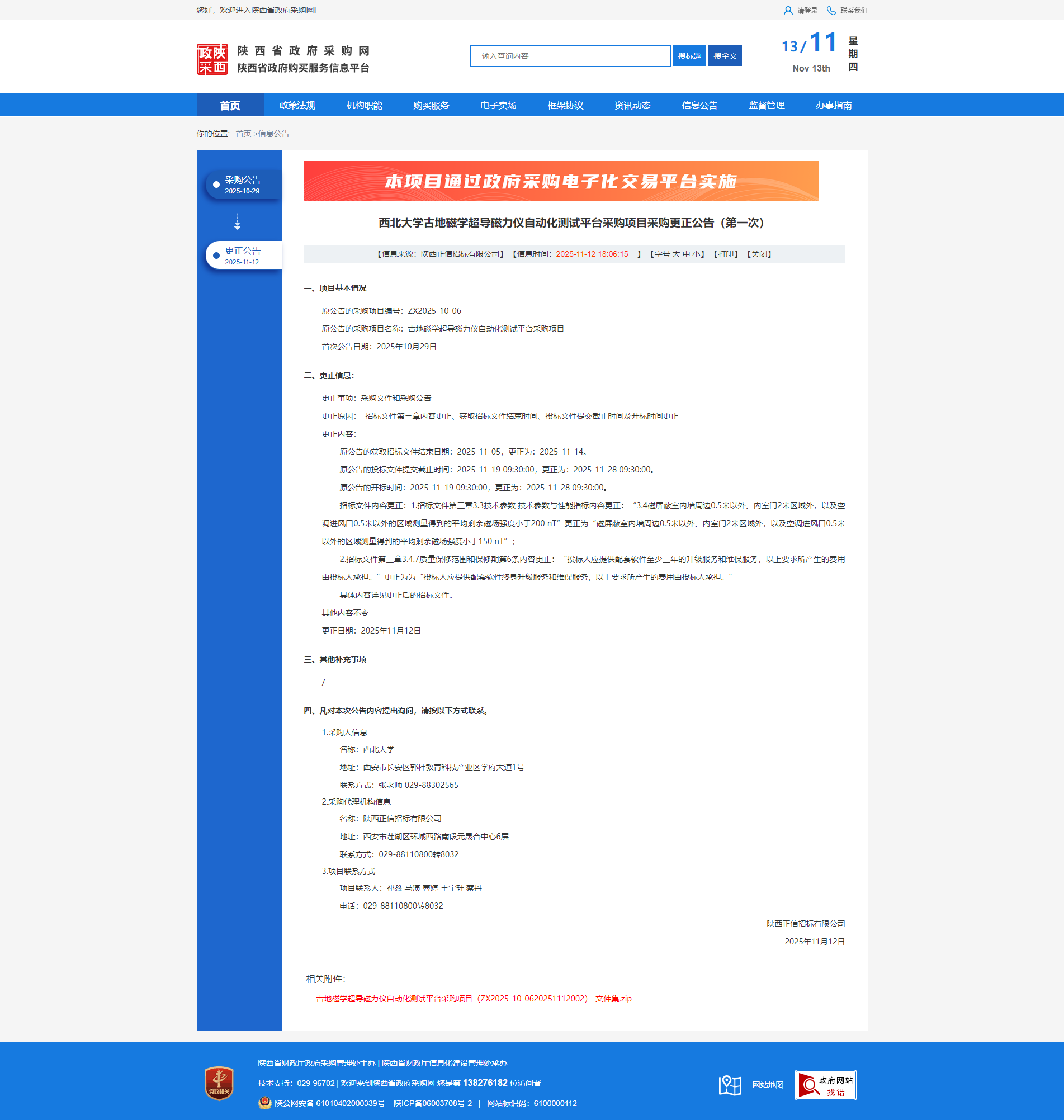 德赢AC米兰官网古地磁学超导磁力仪自动化测试平台采购项目采购更正公告(第一次)