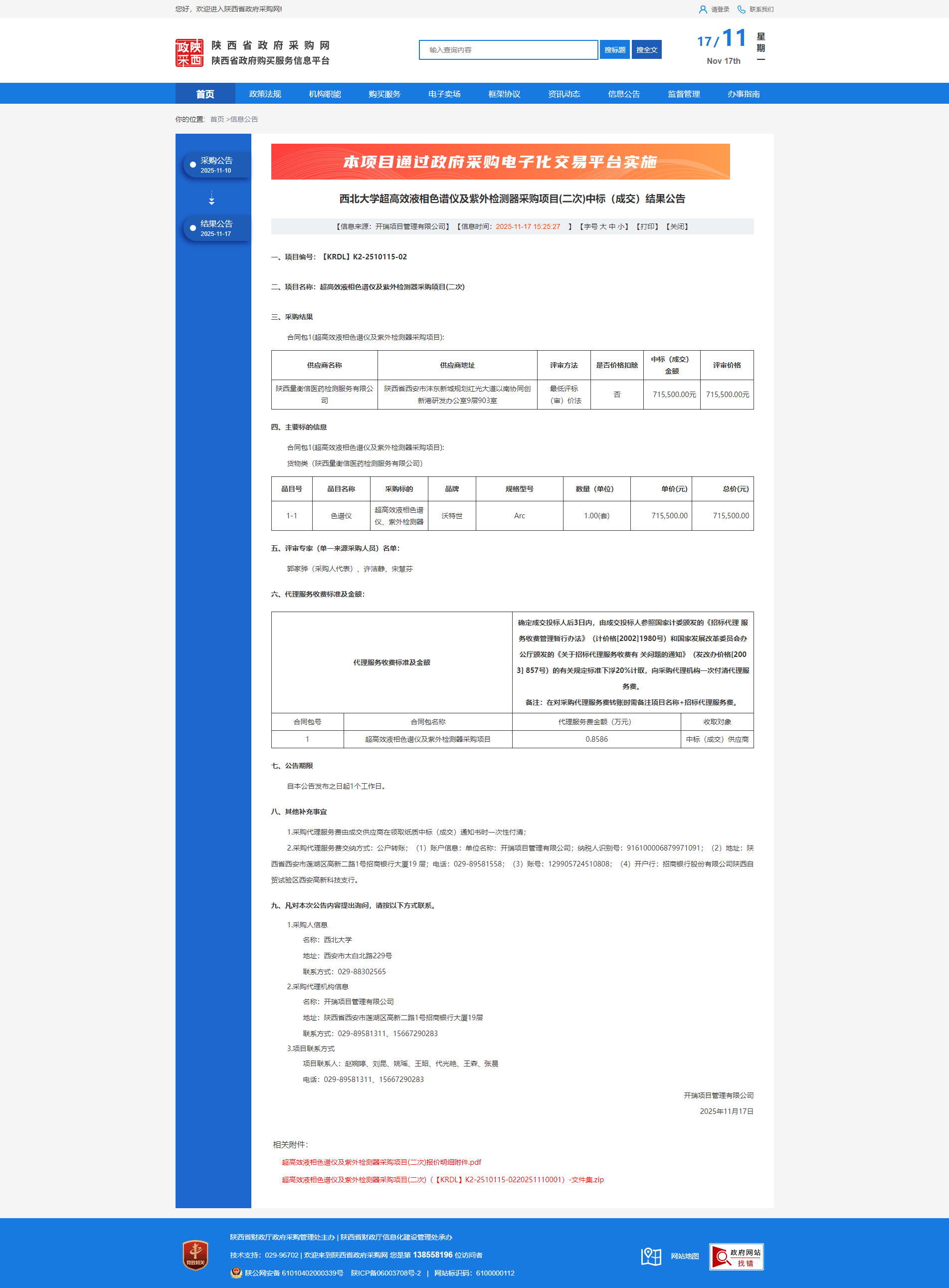 德赢AC米兰官网超高效液相色谱仪及紫外检测器采购项目(二次)中标(成交)结果公告