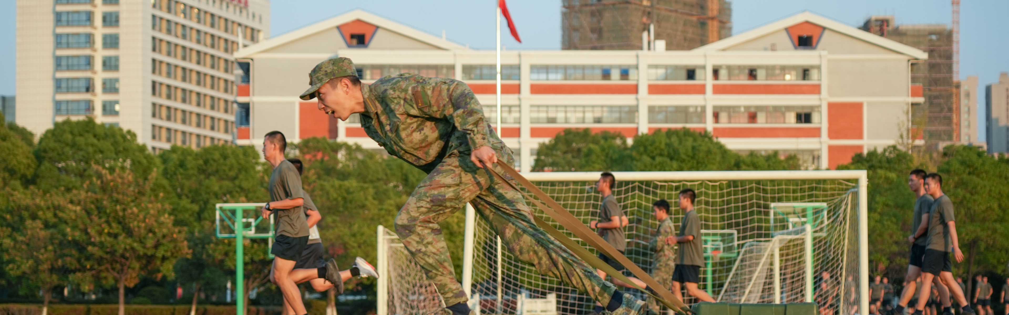 晨光唤醒环校跑道,身影追着曙光奔跑,脚步与呼吸奏响晨曲。绿茵场上,“高地奋进杯” 联赛激战正酣,呐喊声震彻校园。夜幕降临,军事体能训练中心灯火通明,屏幕数据闪烁,勾勒学员的汗水与成长。